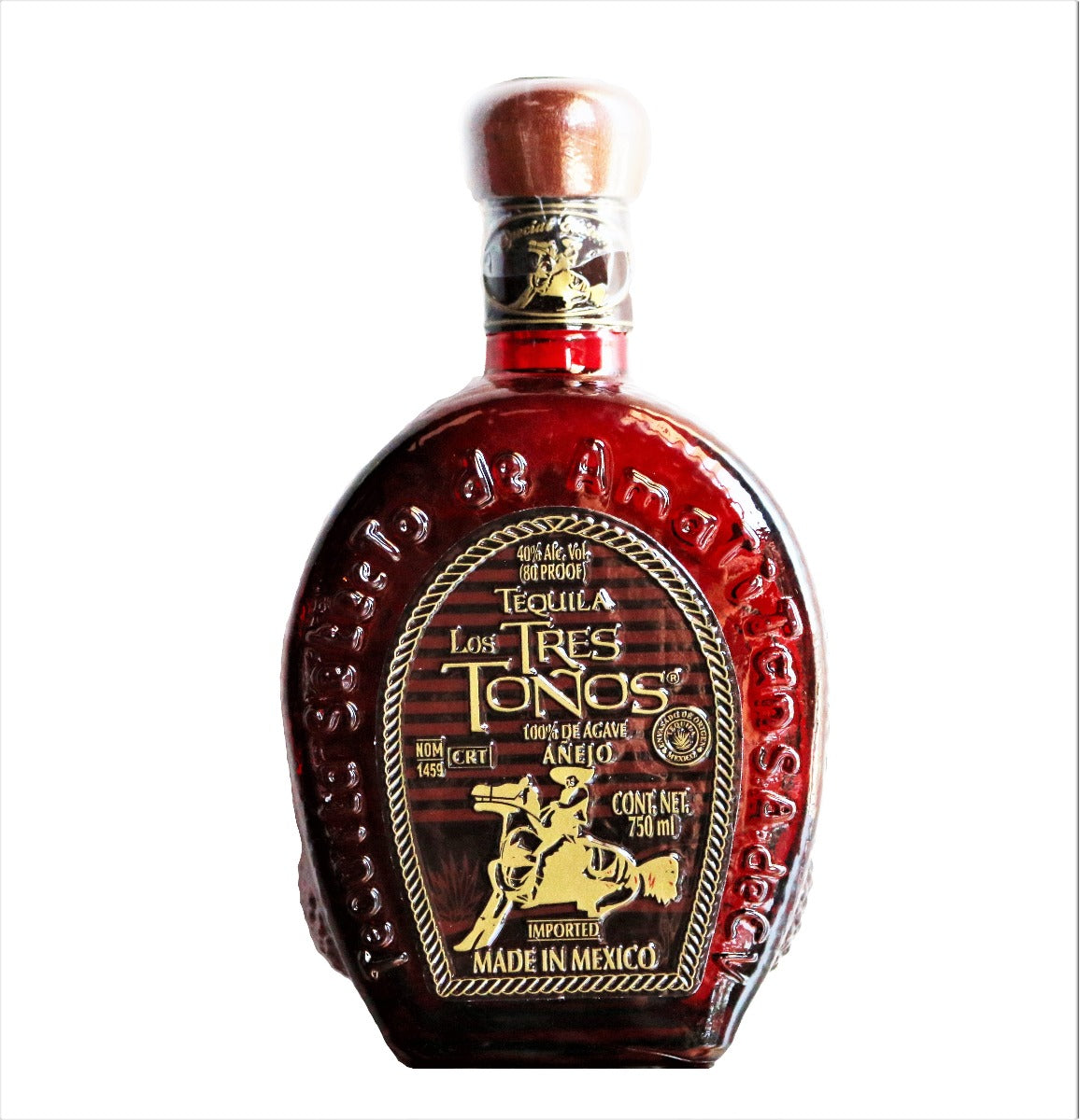 Tequila Los Tres Tonos Extra Anejo is a Tequila produced from 100% Blue Agave Tequilana Weber, carefully planted and harvested at Tequila Selecto de Amatitan, and aged four years in American Bourbon barrels. Tequila Los Tres Tonos is bottled in an elegant artisan carafe specially designed for connoisseurs, which enhances the finesse of the tequila reflecting its high quality.