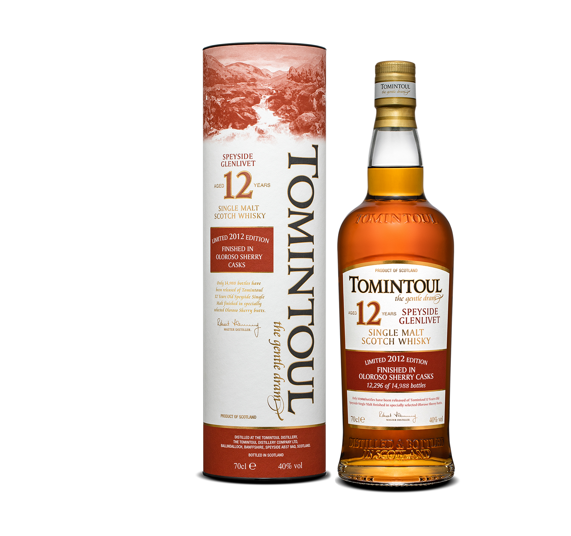 Tomintoul 12 Year Old Oloroso Sherry Cask Finish is a refined Speyside single malt, aged initially in American oak bourbon casks before being finished in premium Oloroso sherry butts sourced from Andalucía, Spain. This maturation imparts rich flavors of dried fruits, chocolate, and subtle spices, delivering a smooth and complex whisky experience. The gift pack presentation makes it an excellent choice for collectors and connoisseurs alike